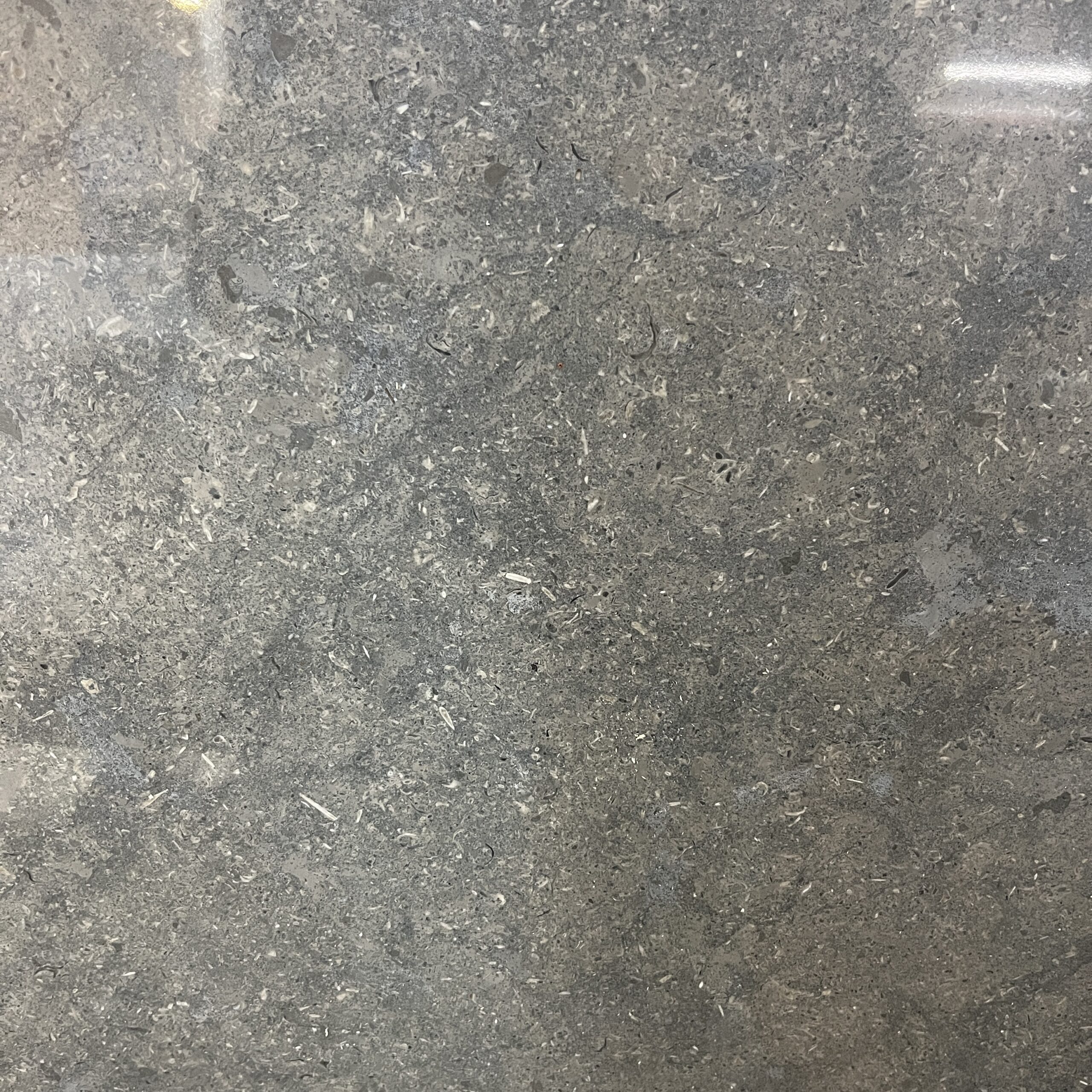 En polerad yta blir blank genom att man slipar upp stenen under olika slipetapper. Detta stänger ner porerna och en blank yta uppstår på det annars porösa materialet. (Polerad blir lite mörkare i nyans, mattslipad blir lite ljusare nyans.)