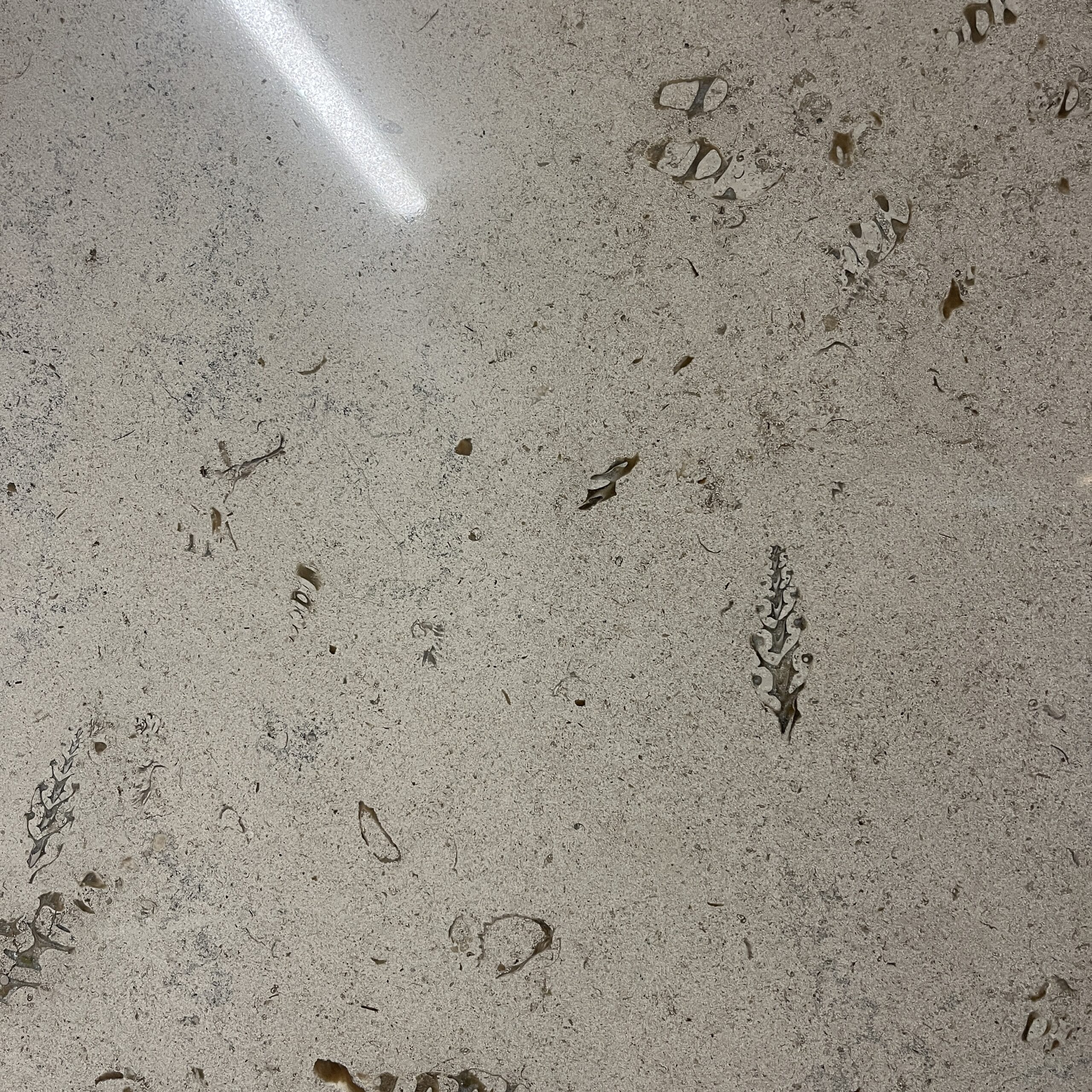 Det som kan vara bra att veta är att kalksten är känsligare för repor än många andra stenar. Fördelar: Fossilen i stenen gör att ingen yta är den andre lik, vilket gör att du får ett unikt material. Torka av ytan med en fuktig trasa, torka sedan av igen tills ytan är torr igen. Kalksten tål inte sura vätskor som kan vara helt omöjliga att få bort.